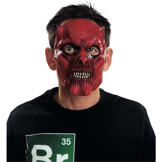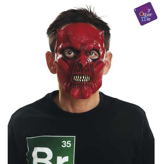 1/2 Devil Latex Mask One Size. Edad minima recomendada ADULTO. No Utiliza pilas. Idioma producto ES|EN|FR|IT|PT|DE. Material LÁTEX
