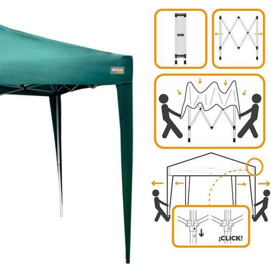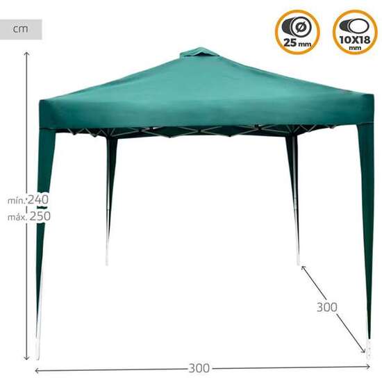 Cenador plegable verde con chimenea Max-air 300X300X250 cm. Material STEEL+FABRIC