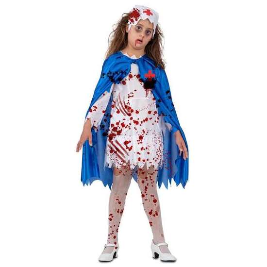 Disfraz Enfermera Sangrienta 5-6 Años (Cofia, Capa Y Vestido Con Delantal.). Talla M. Color blanco